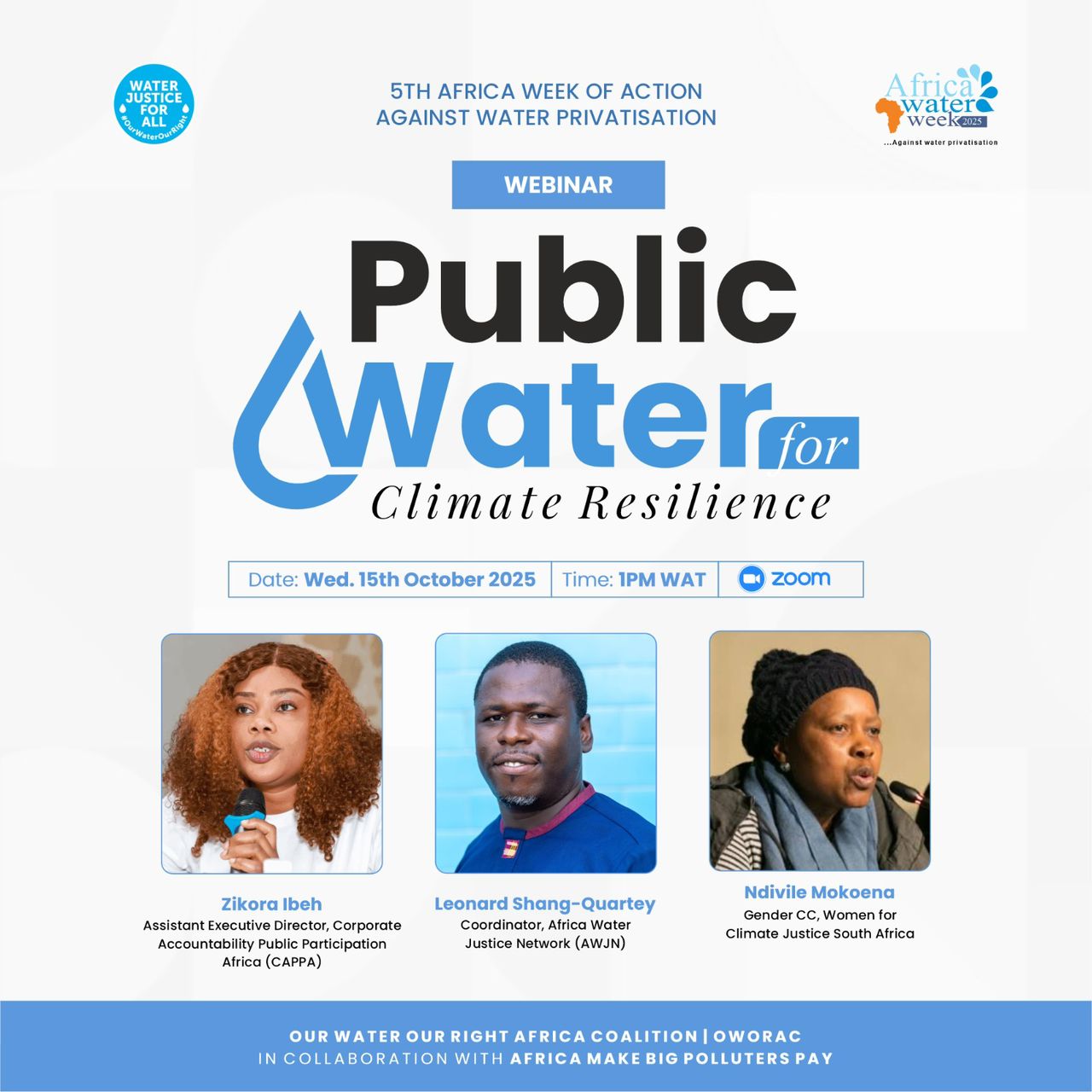The Fifth Africa Week of Action Against Water Privatisation, held from 13 to 18 October 2025, unfolded across the continent...